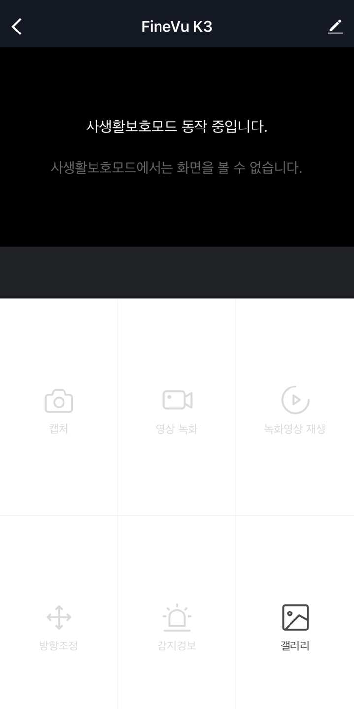 위와 같이 '사생활보호모드 동작중'이라고 나오면서 화면이 보이지 않습니다.