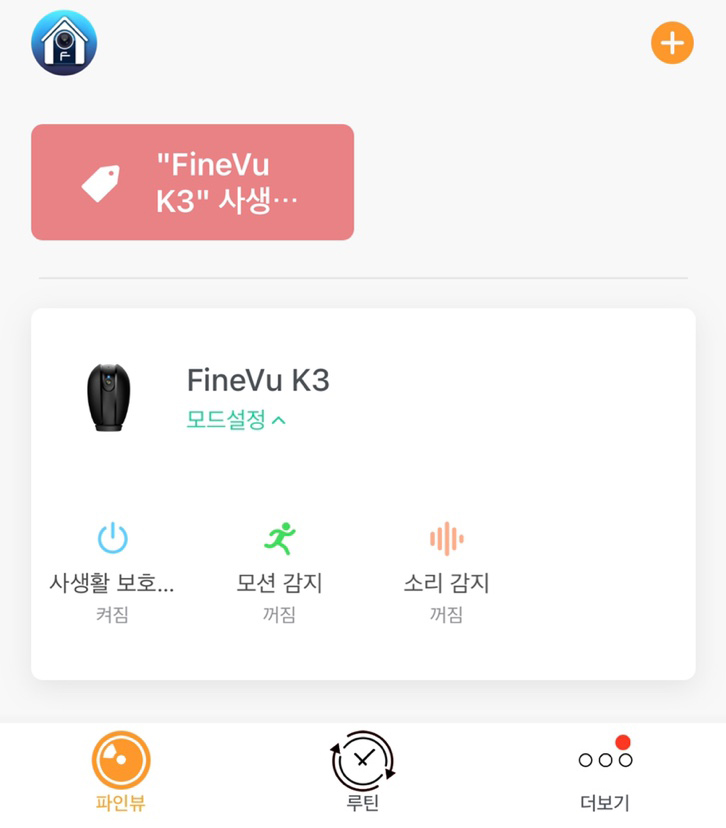 앱을 켜고 등록된 파인뷰 K3 모드를 확인해 봅니다.