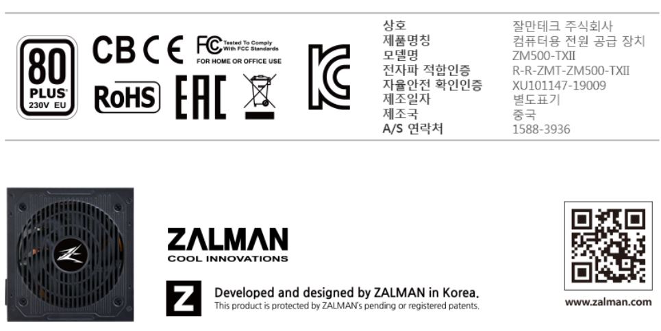 위에서 살펴보기로 했던 잘만 파워 500W의 제품 특징에 대해 살펴볼까요?