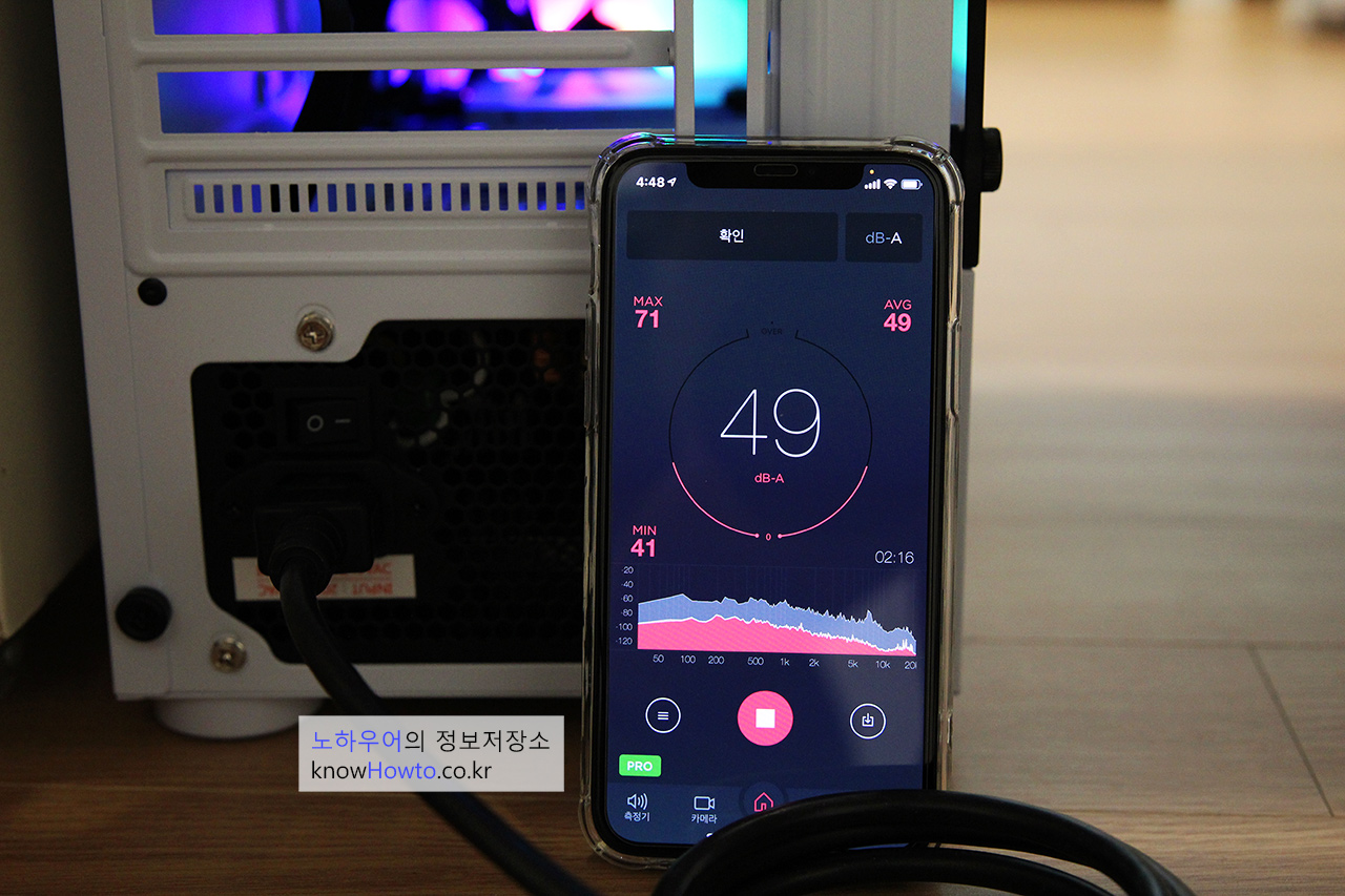 소음레벨은 49db를 기록하였습니다.