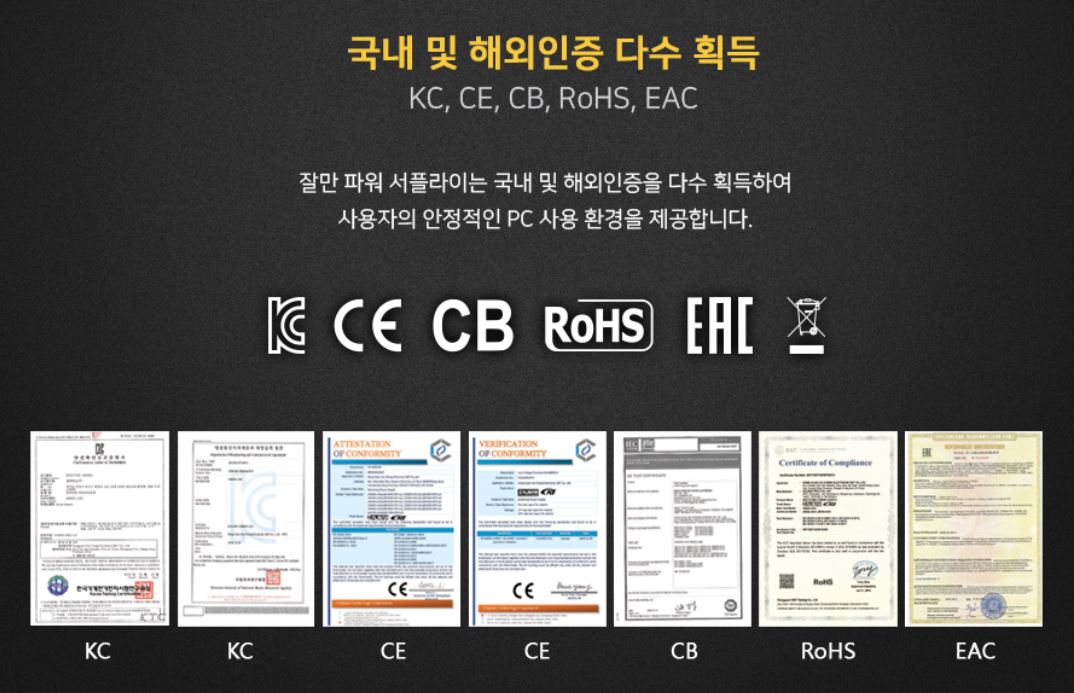 KC, CE, CB, RoHS, EAC 인증을 받았다고 되어있네요 ;)