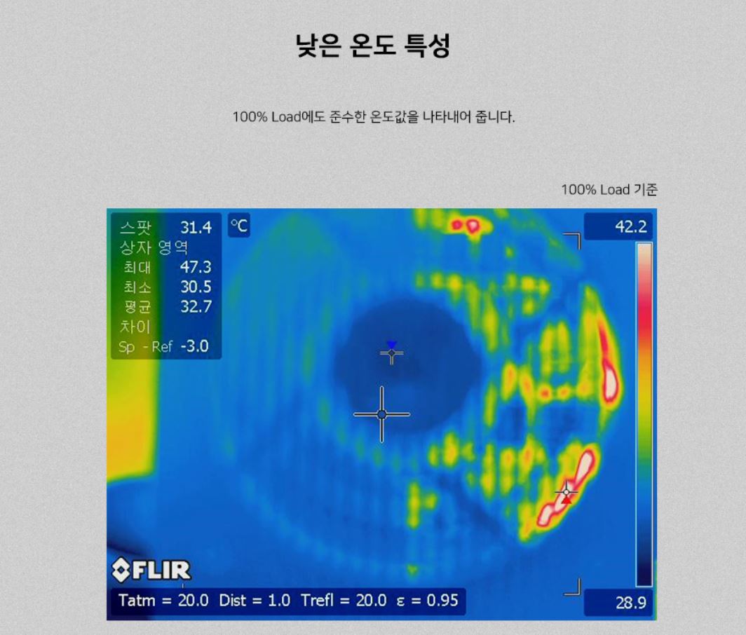 파워를 풀로 써도 파워의 온도가 그리 높아지지 않습니다.