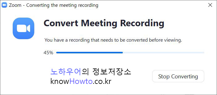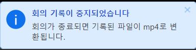 8. 회의를 종료하자 위와 같은 팝업창이 나오고 미팅녹화파일을 생성합니다.