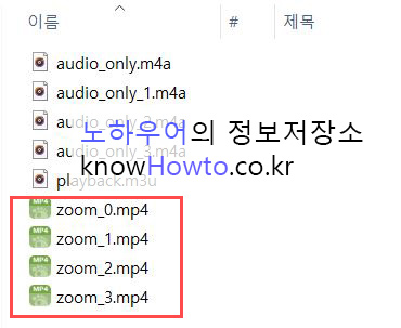 9. 녹화가 완료되면 파일이 저장된 폴더에서 아래와 같은 mp4 비디오 파일들을 보실 수 있습니다.