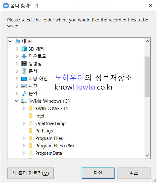만약 설정에서 '회의가 끝날 때 기록파일을 저장할 위치 선택'에 체크했다면