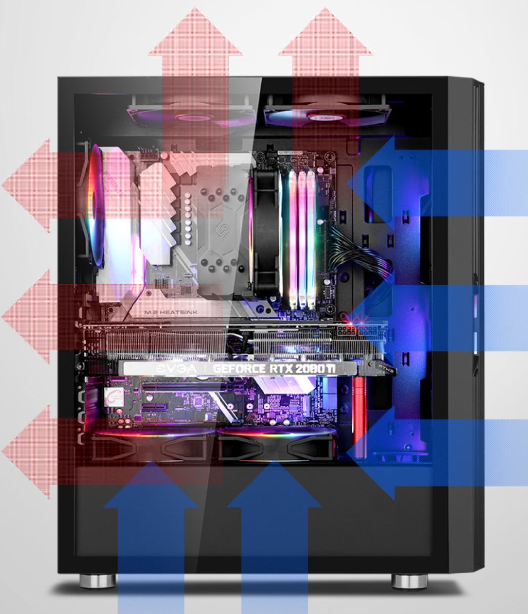 총 팬의 개수는 6개인데 파워설치부위 상단에 추가 팬 2개도 설치할 수 있습니다. (별도구매)