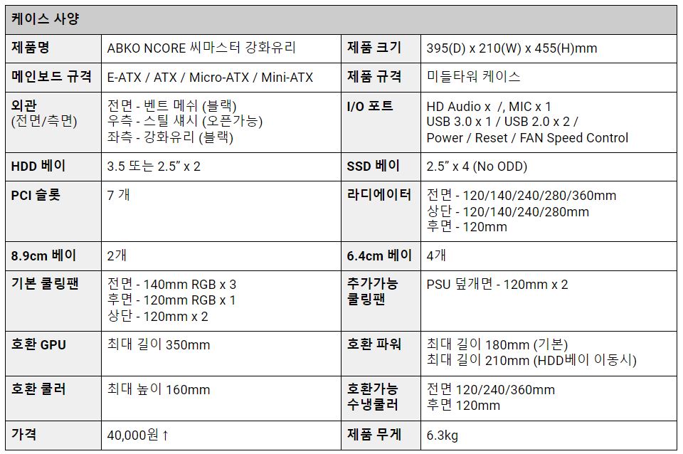 앱코 엔코어 씨마스터 케이스는 미들타워 케이스입니다.