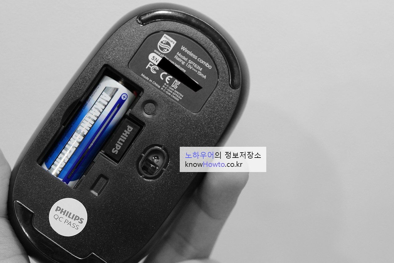 건전지 덮개를 열면 키보드 마우스 리시버가 들어 있습니다.