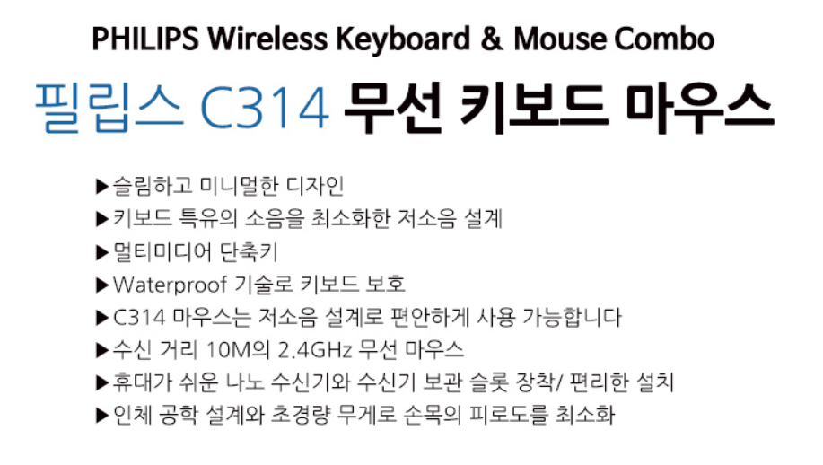 [ 필립스 C314 무선 키보드 마우스 스펙 ]