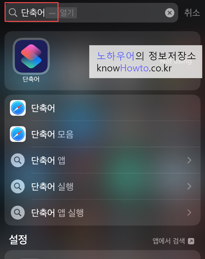 '단축어'라고 입력해서 앱을 찾았습니다.