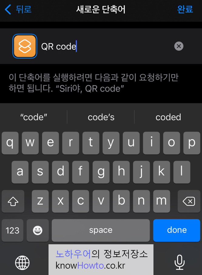 11. 이제 단축어의 이름을 입력해야 합니다.