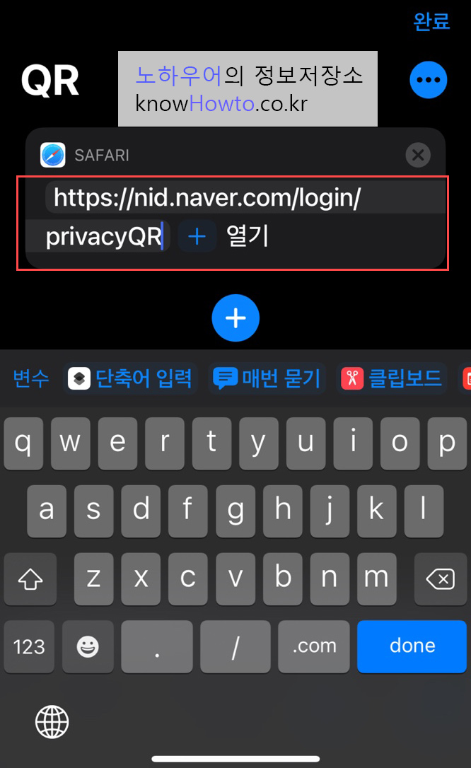 저는 QR이 이미 단축어로 등록되어 있지만 여러분은 없으실테니