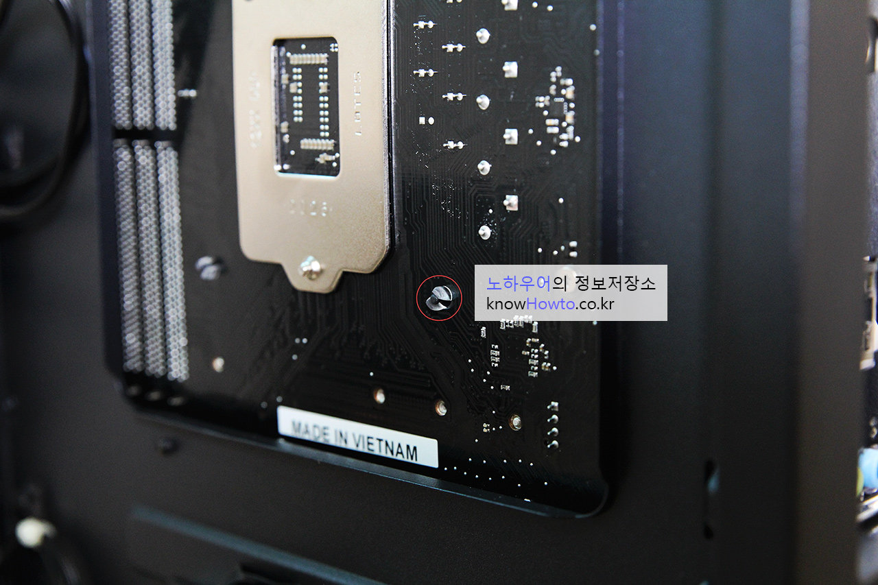 쿨러지지대가 잘 설치되었다면 보드 뒷면도 확인해 보세요.