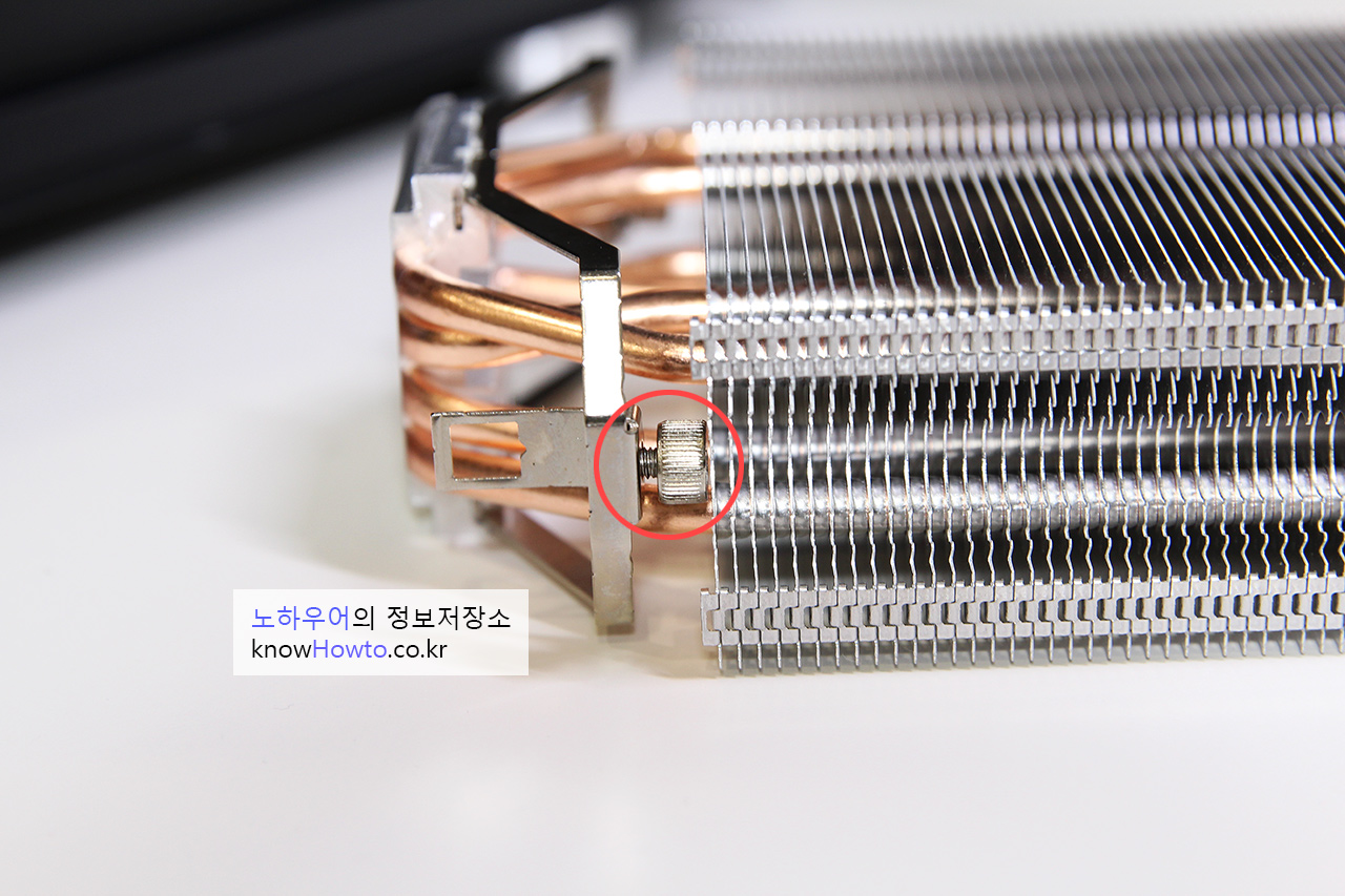 그 다음에 쿨러를 설치하게 되는데 위와 같이 알루미늄 방열판에 달린 나사를 좀 풀어주세요.
