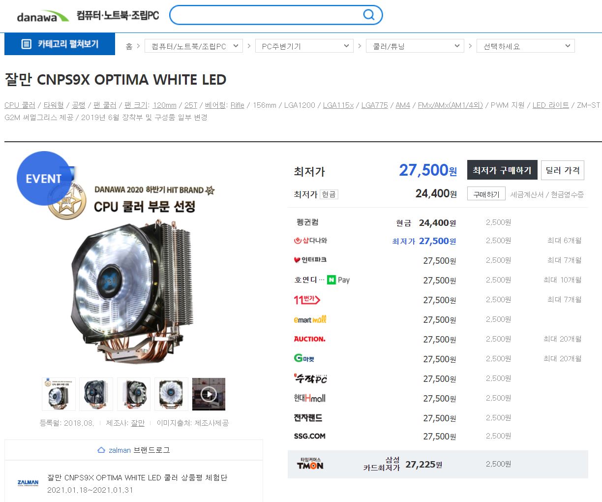 [다나와] 잘만 CNPS9X OPTIMA WHITE LED