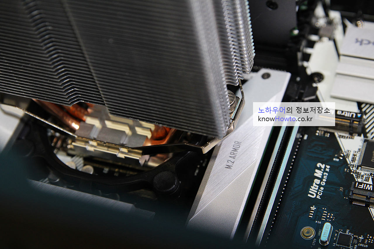 준비가 되었다면 CPU쿨러 위치에 쿨러지지대를 대고 꼭 눌러줍니다.