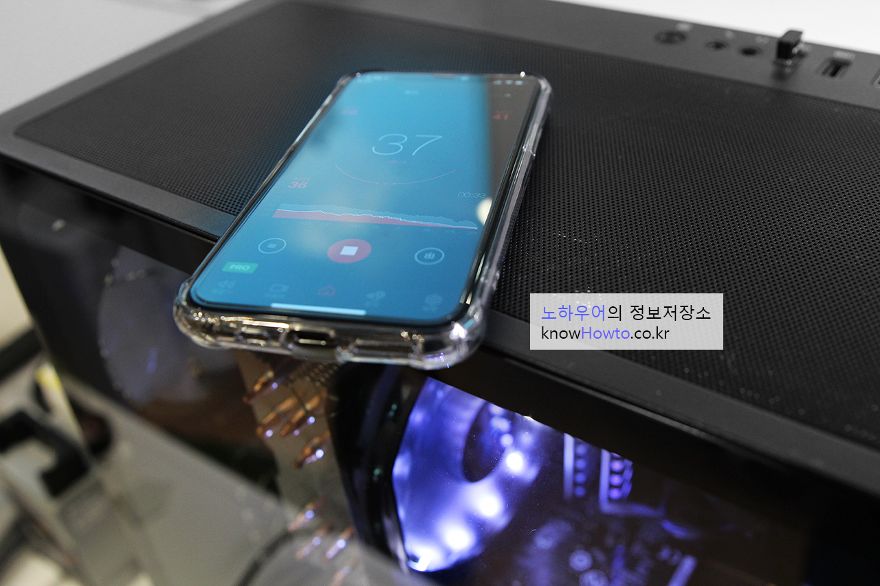 케이스 팬을 끄고 소음측정을 했는데 팬 바로 앞에 두니 44db가 측정되네요.