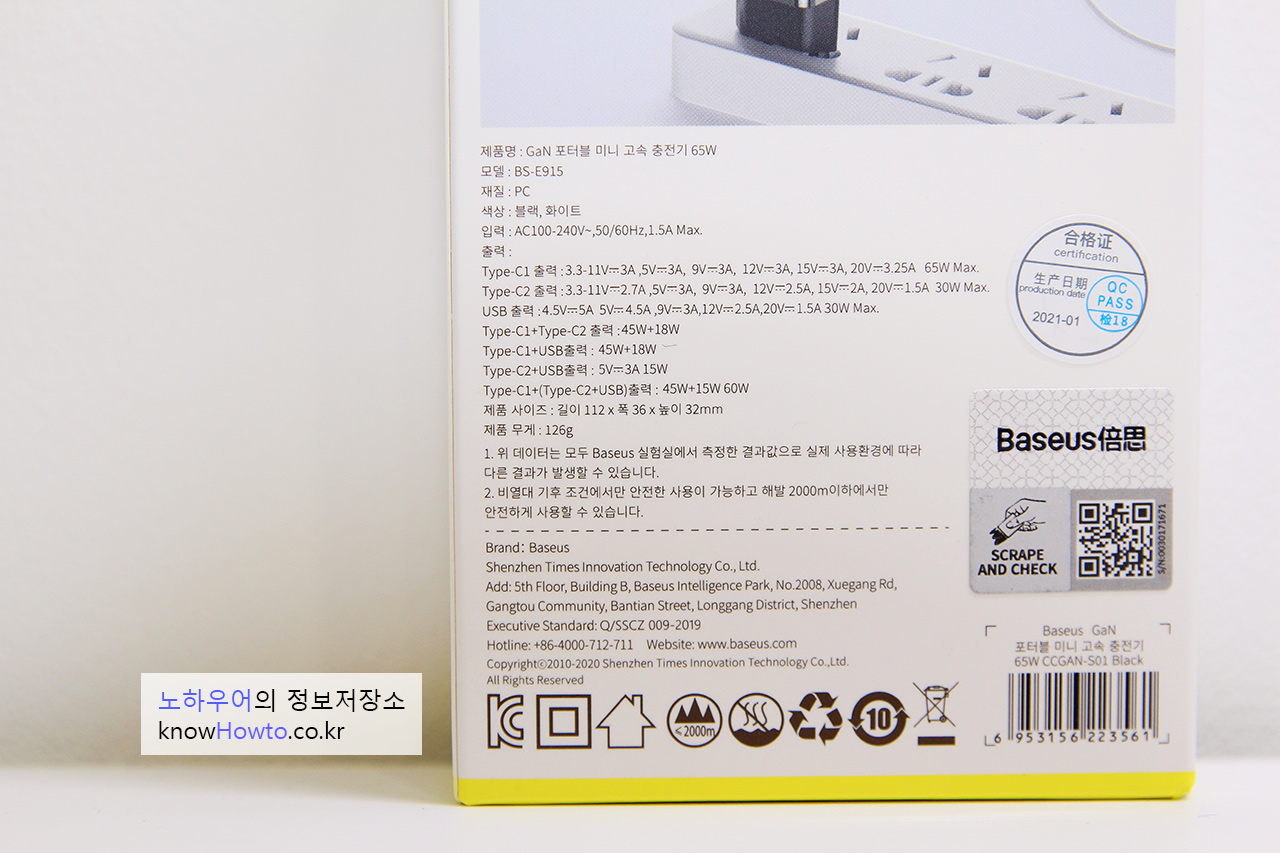 뒤쪽 섹션에서 베이스어스 65W 한국형 고속충전기 스펙을 살펴볼 때 자세히 설명 드리겠습니다.