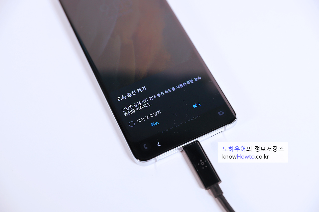 초고속 충전이 되는 케이블이라서 '고속 충전 켜기'라고 케이블을 꽂으니 팝업창이 뜹니다.