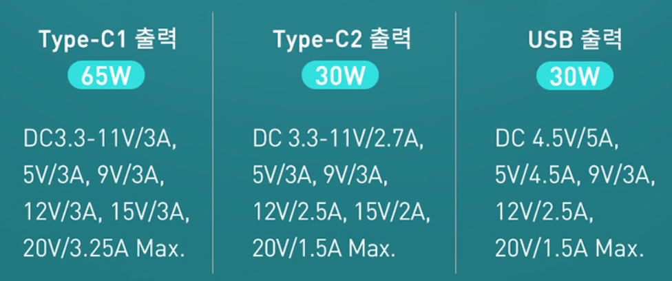 마지막 세번째 USB 포트는 최대출력 30W입니다.