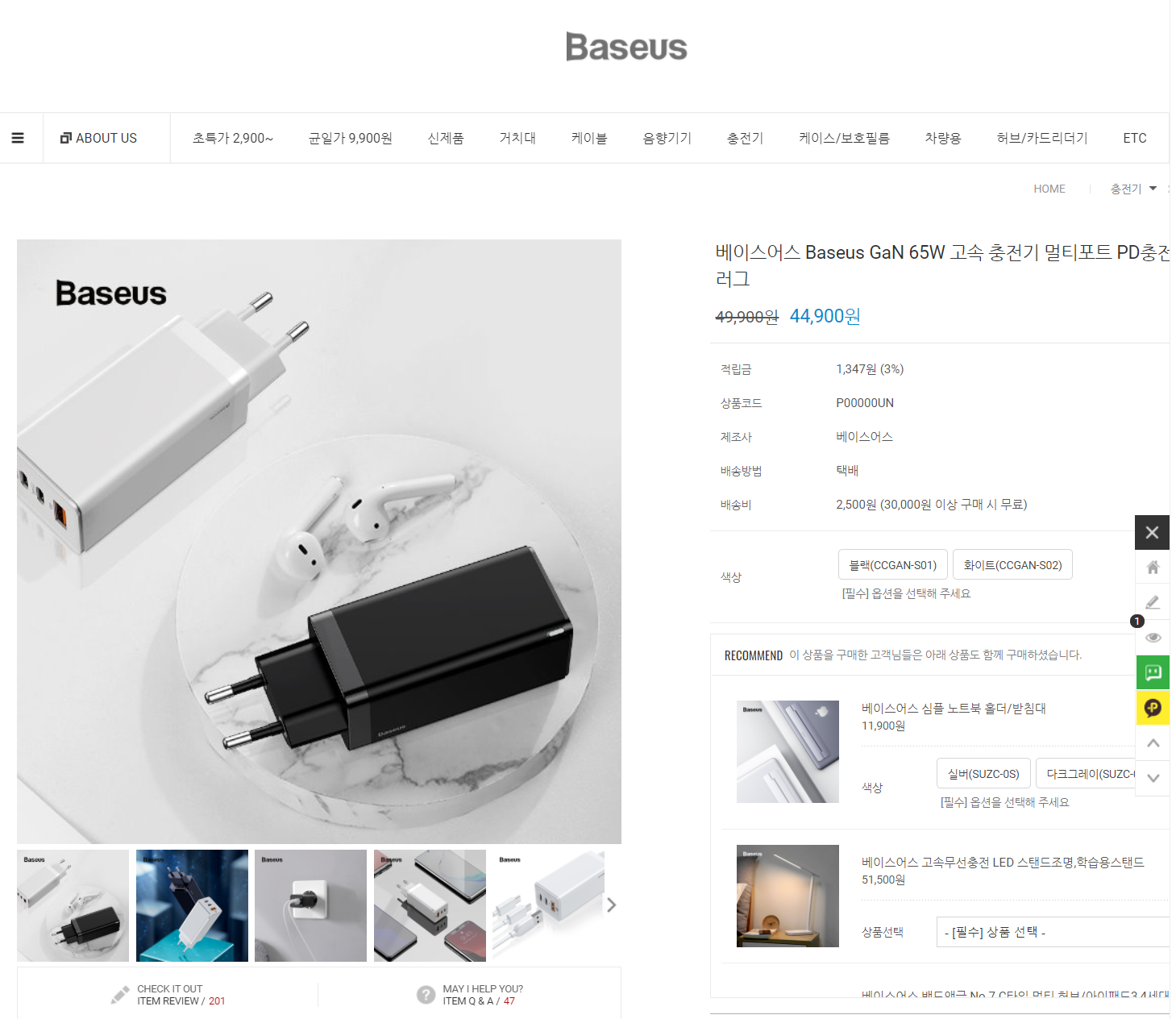 특히 이번에 체험하게 된 제품은 베이스어스 65W 한국형으로 한국플러그에 꼭 맞는 맞품형 제품입니다.