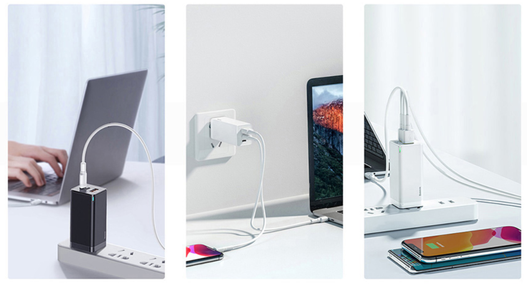 작고 가벼운 휴대용 노트북 및 휴대폰 고속충전기 - Baseus 65W GaN PD