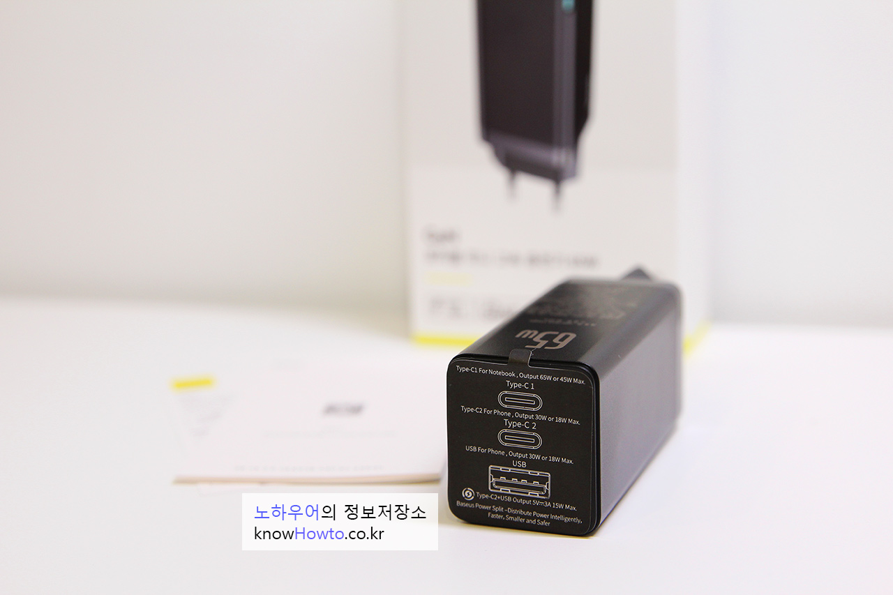 뒤쪽 섹션에서 베이스어스 65W 한국형 고속충전기 스펙을 살펴볼 때 자세히 설명 드리겠습니다.