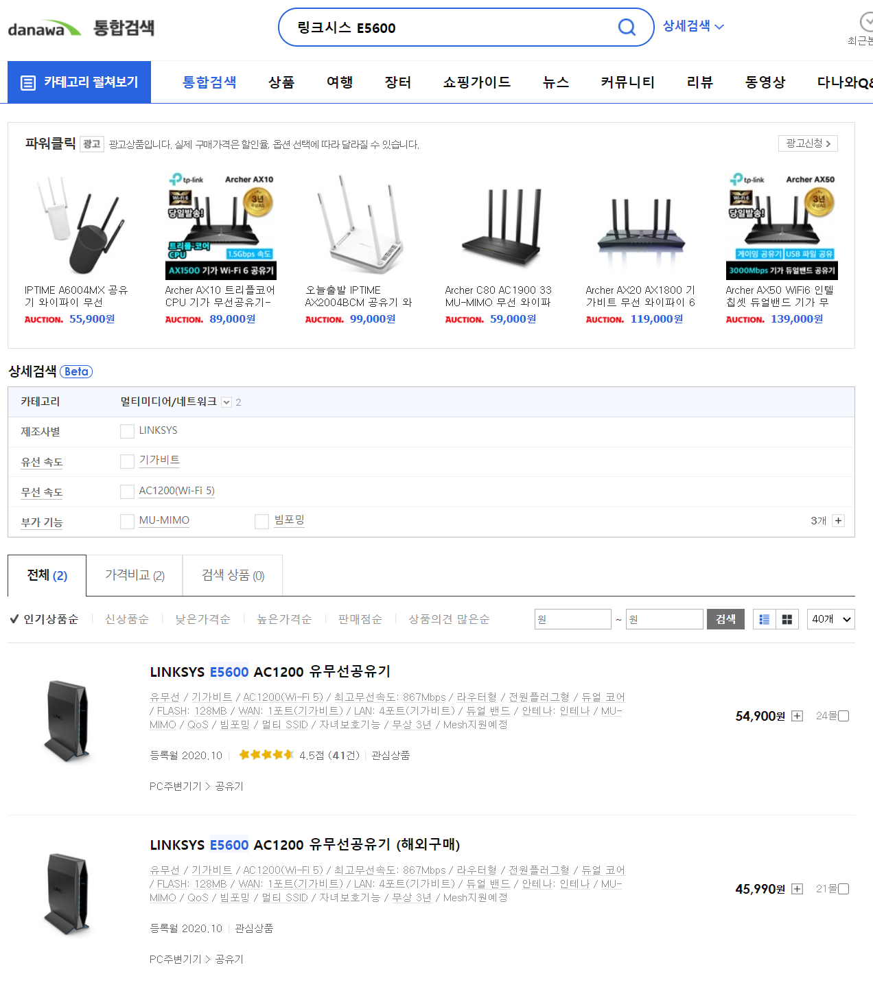 참고로 링크시스 E5600 공유기는 2020년 10월 출시되었고