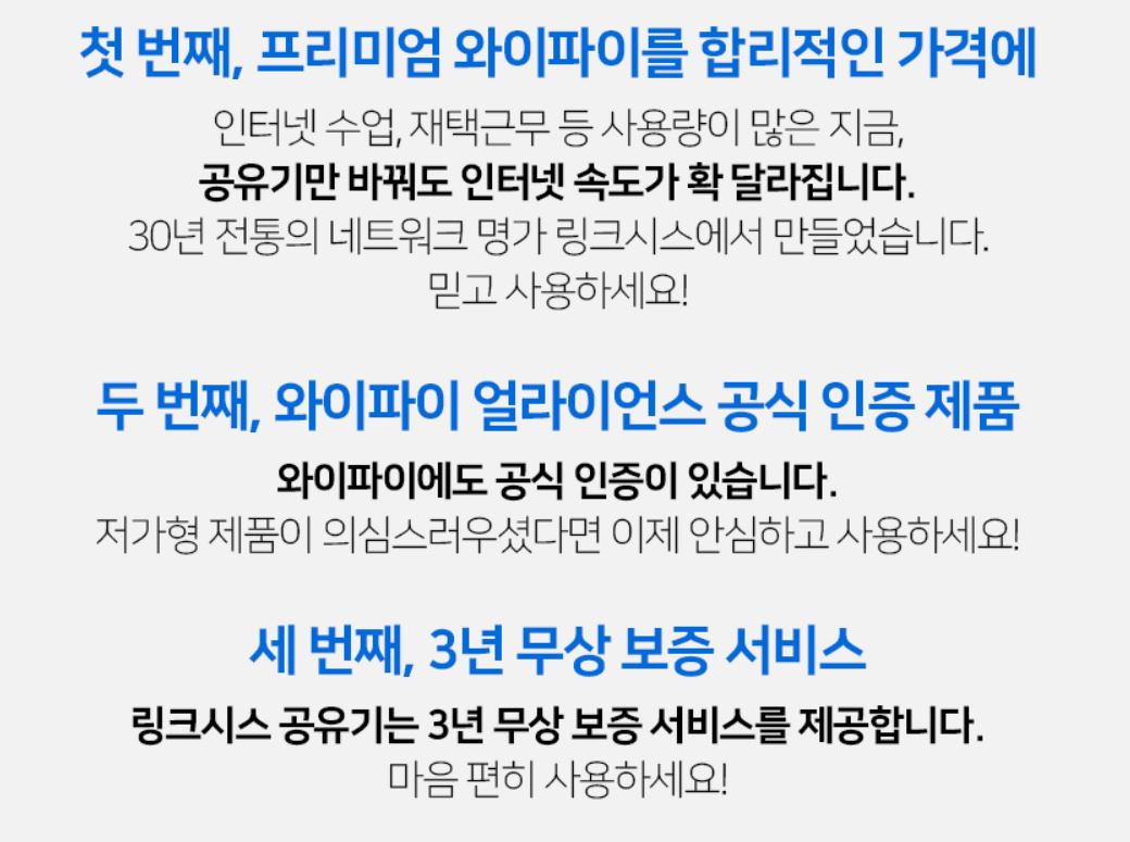 "안정적이고 합리적인 가격의 인터넷 유무선 공유기"라는 것입니다.