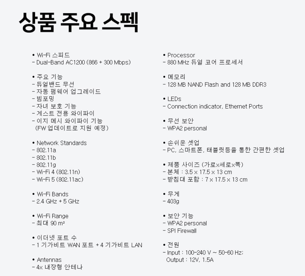 - 포트 : 기가비트WAN x 1, 기가비트LAN x 4