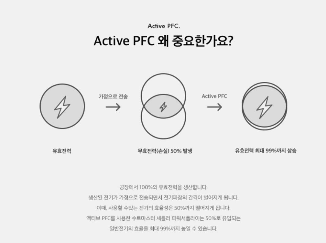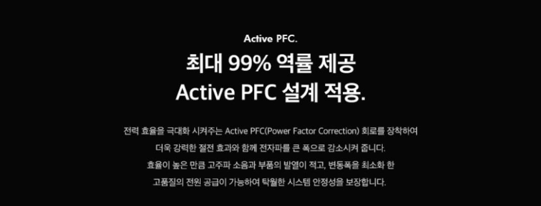 액티브 PFC 최대 역률 99%. 이정도면 동급에서 최강입니다.