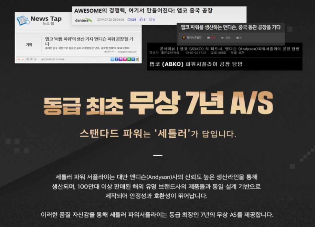 마지막으로 앱코 파워는 동급최초로 무상 AS 7년을 제공합니다!