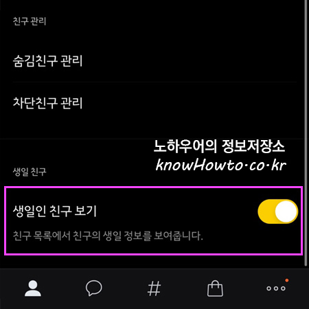 첫번째로 <내 생일이 친구들에게> 카톡 생일 안뜨게 뜨게 하는 방법 입니다.