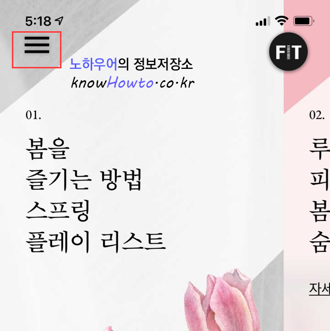 2. 좌측 상단의 메뉴를 클릭합니다.