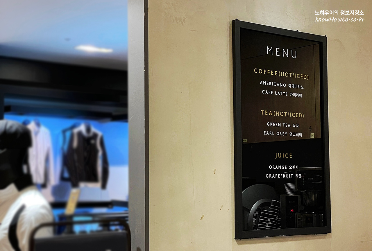 신세계 멤버스바에서는 아메리카노, 까페라떼, 녹차, 얼그레이, 오렌지쥬스, 자몽쥬스도 가능합니다.