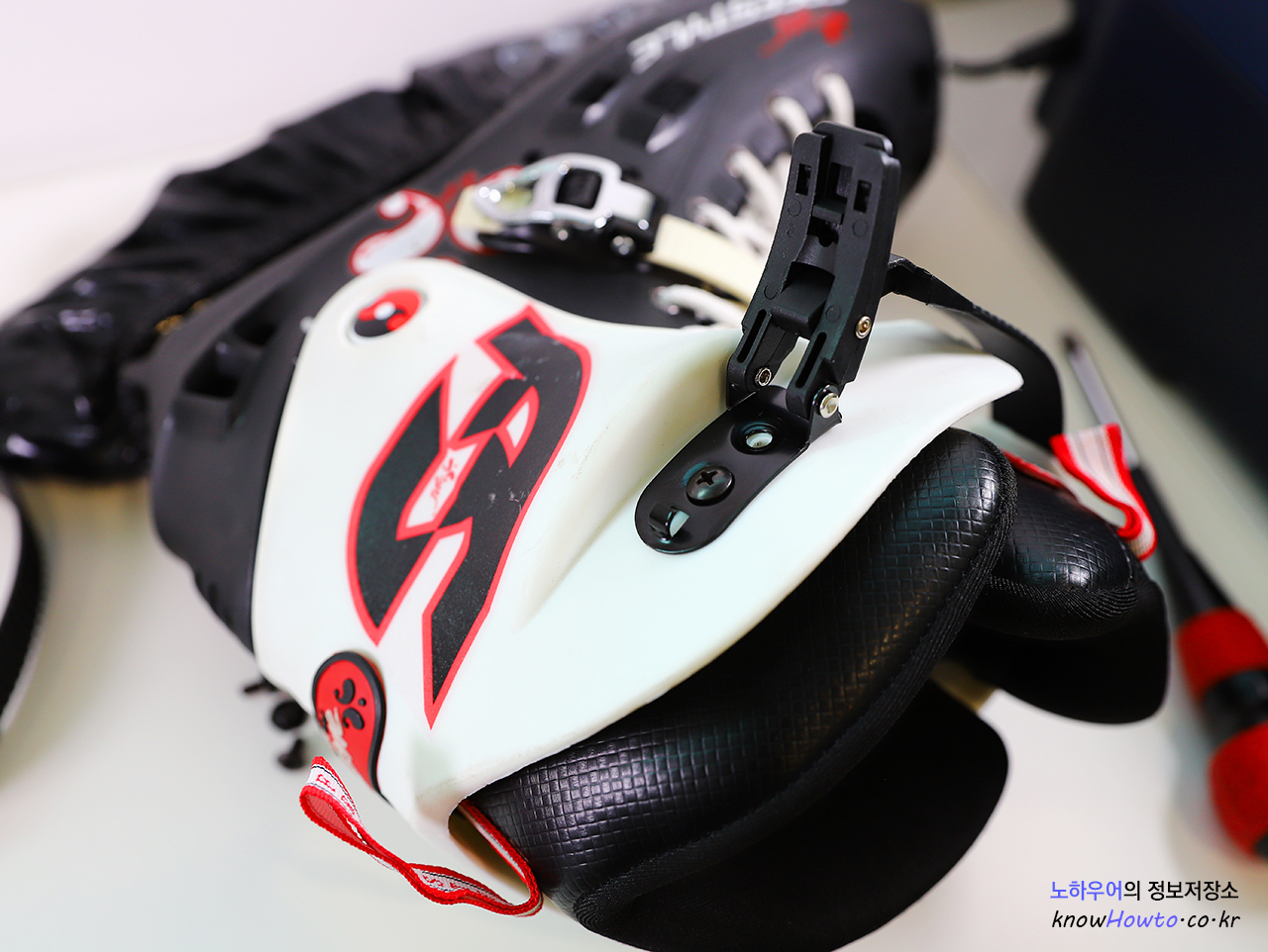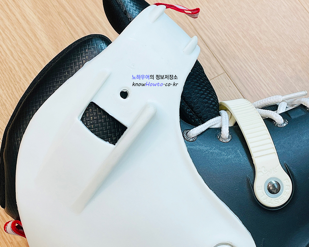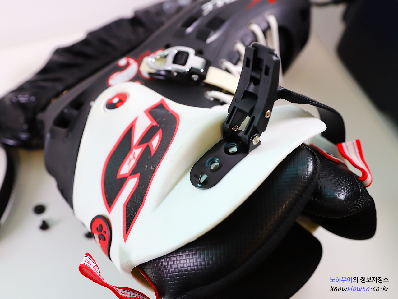 스트랩은 발목을 꽉 잡아주는 역할을 하기 때문에, 반드시 아주 강하게 나사를 조여주셔야 합니다.