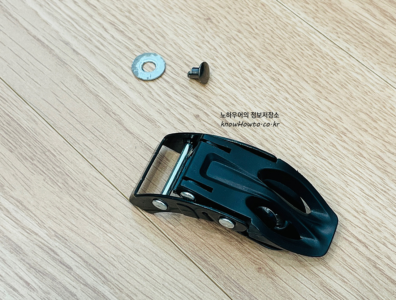 구멍 2개가 보이죠? 저기에 새 버클(스트랩)을 설치할 것입니다.