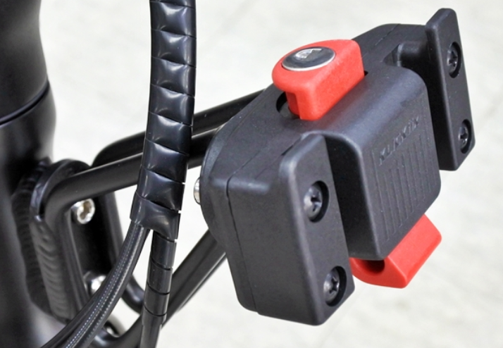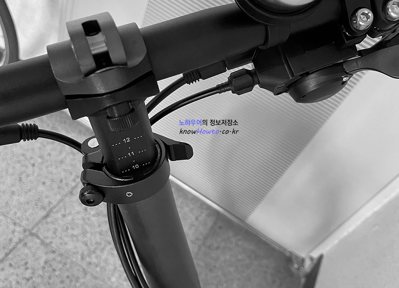 사진 윗쪽에 보시면 핸들바를 접을 수 있는 힌지부분이 보이고