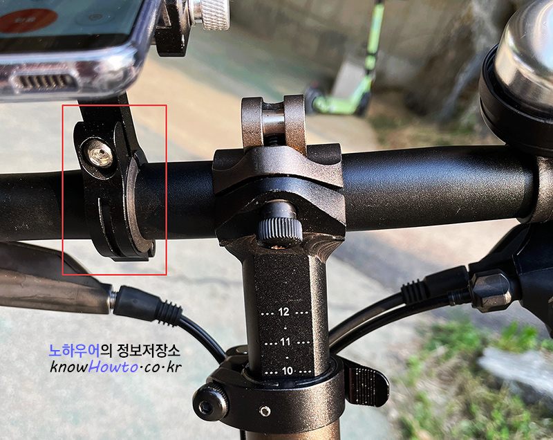 둥그랗게 열린 부분을 핸들바에 대어봅니다.