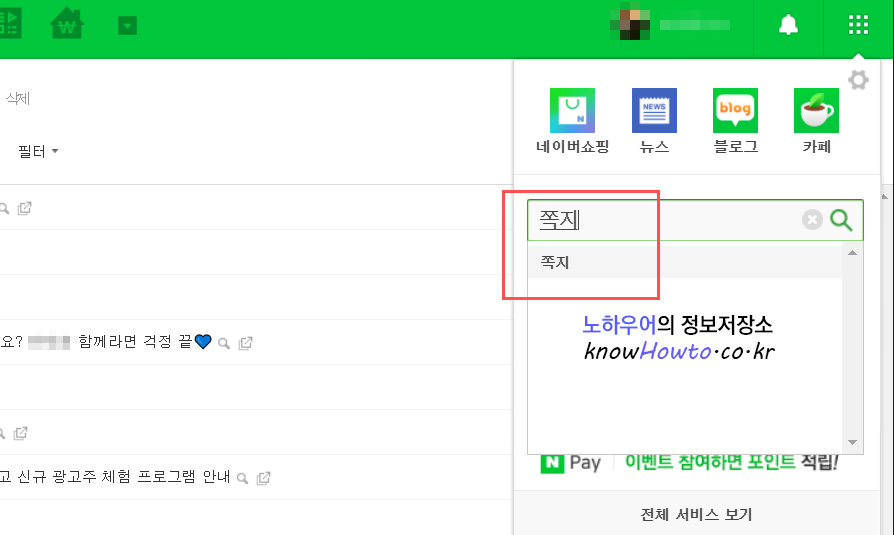 위와 같이 네이버 검색창에서 '네이버 쪽지'라고 입력하면
