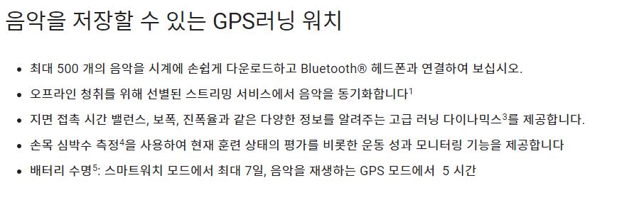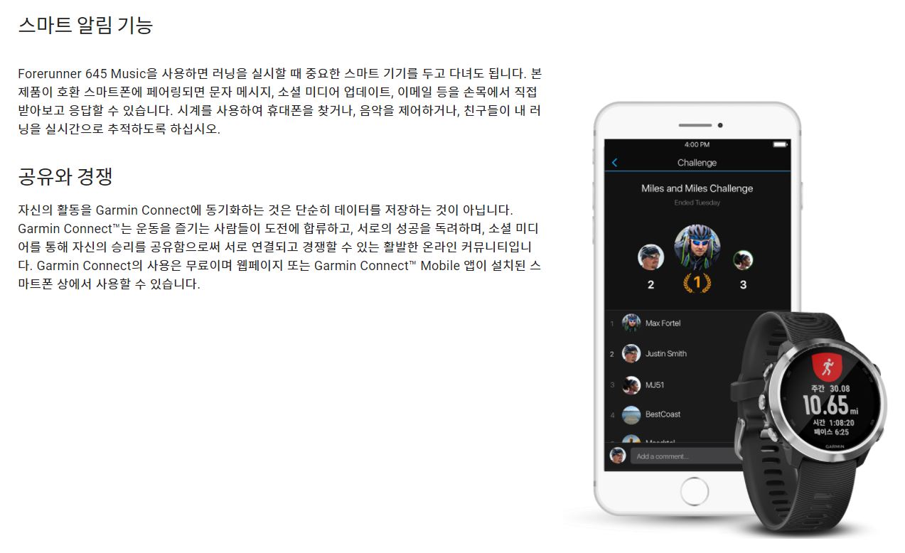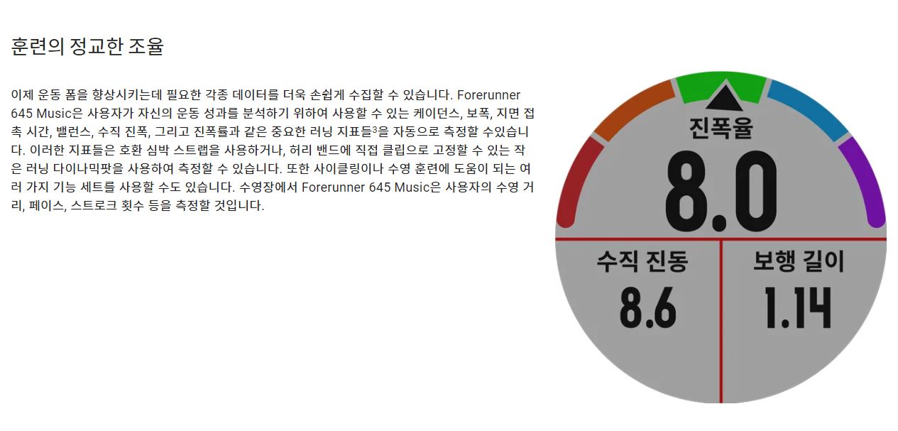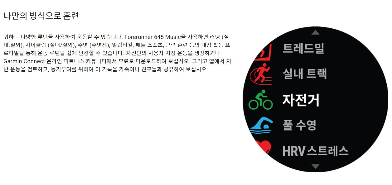 [ 가민 포러너 645 뮤직 홈페이지에서 설명하는 기능들 ]