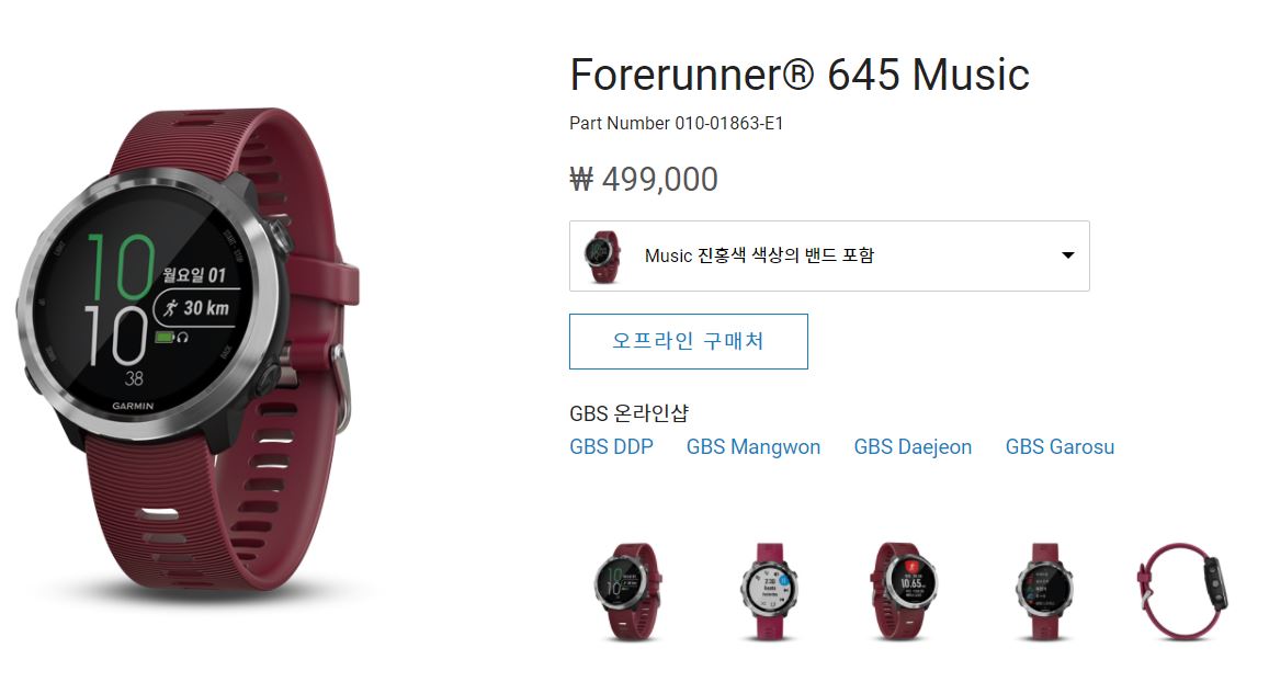 위 사진에서 보시는 바와 같이가민 645 뮤직은 정가는 499,000원으로