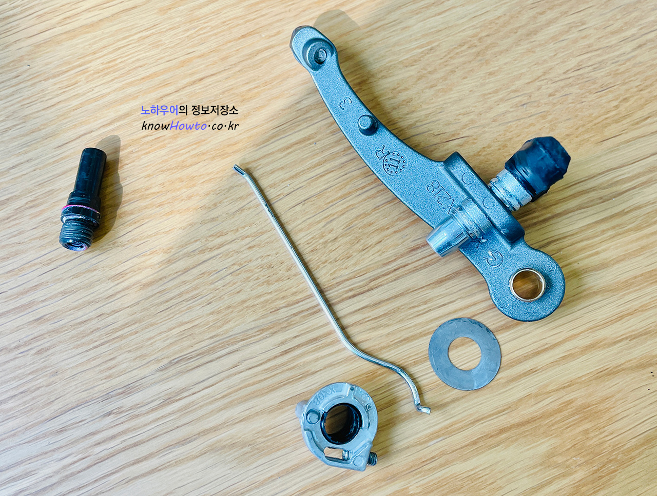 이제 요넘을 포크의 피봇 볼트에 체결해야 하는데