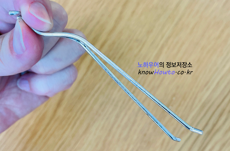 이를 뺀찌로 잡고 힘을 주어 휘어서 두 개를 똑같이 만들어줍니다.