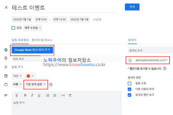 a) 구글 캘린더에서 일정을 생성하고 화상회의 코드를 추가