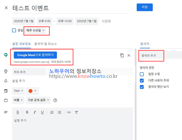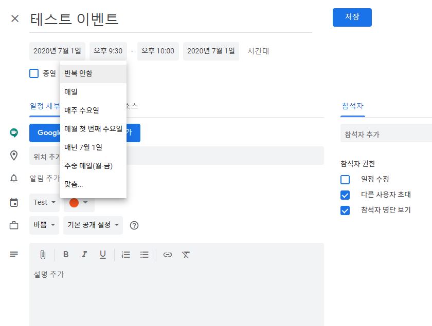 구글 미트 사용법4 - 주간회의, 월간회의 등 - 반복일정 생성하기