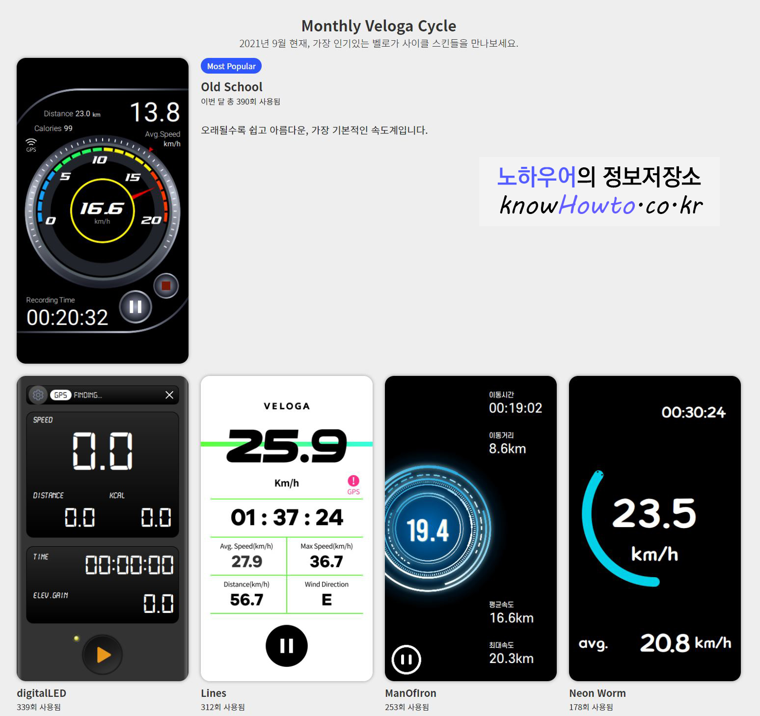 벨로가사이클은 다양한 스킨을 지원하는 속도계 어플입니다. ^^