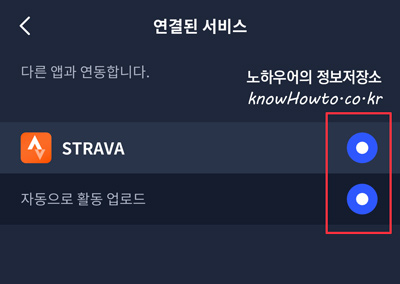 3. 위 화면에서 스트라바 옆의 동그란 점을 선택합니다.