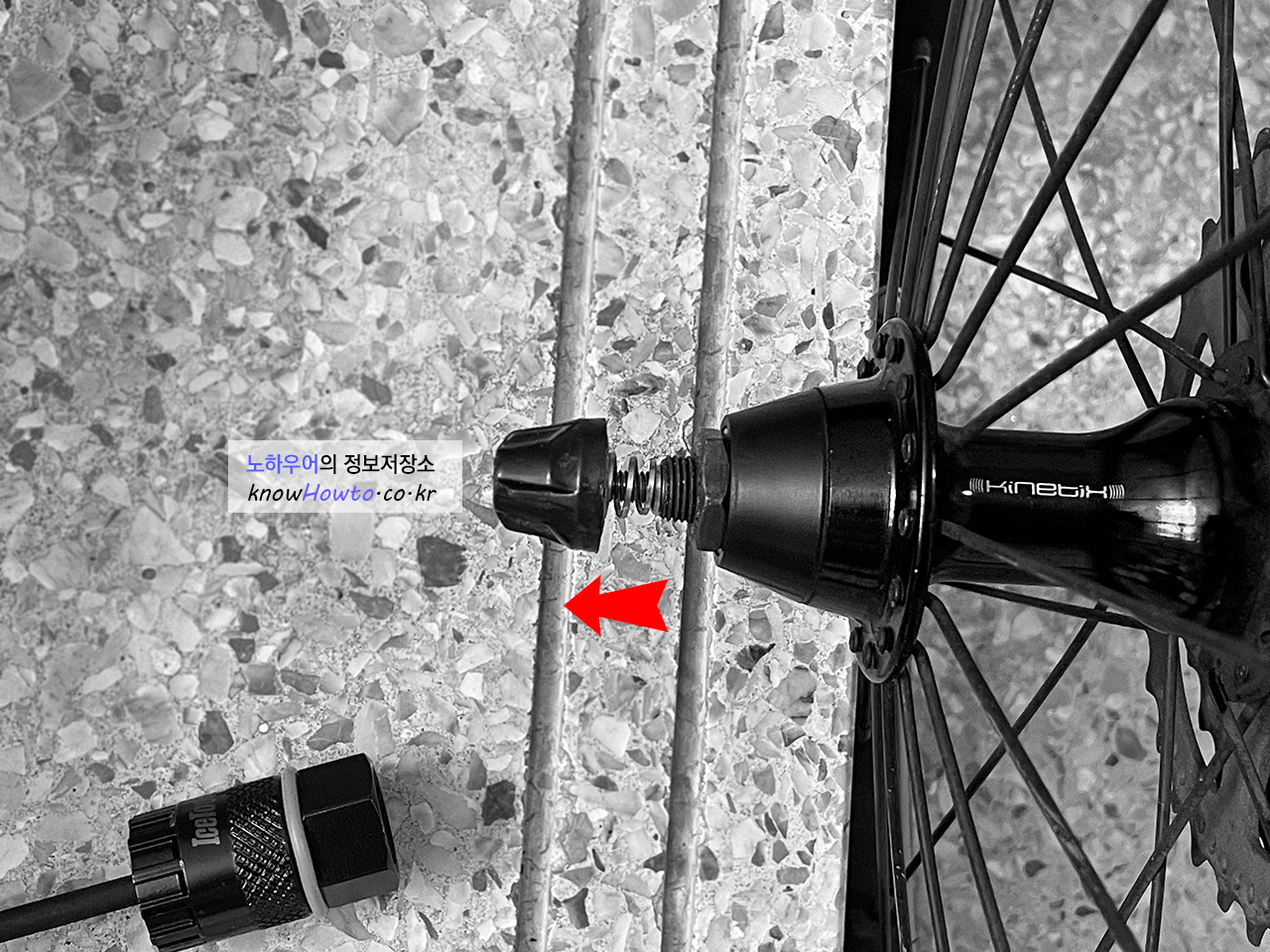 1. 우선 휠의 QR을 풀어 자전거 프레임에서 휠을 분리합니다.