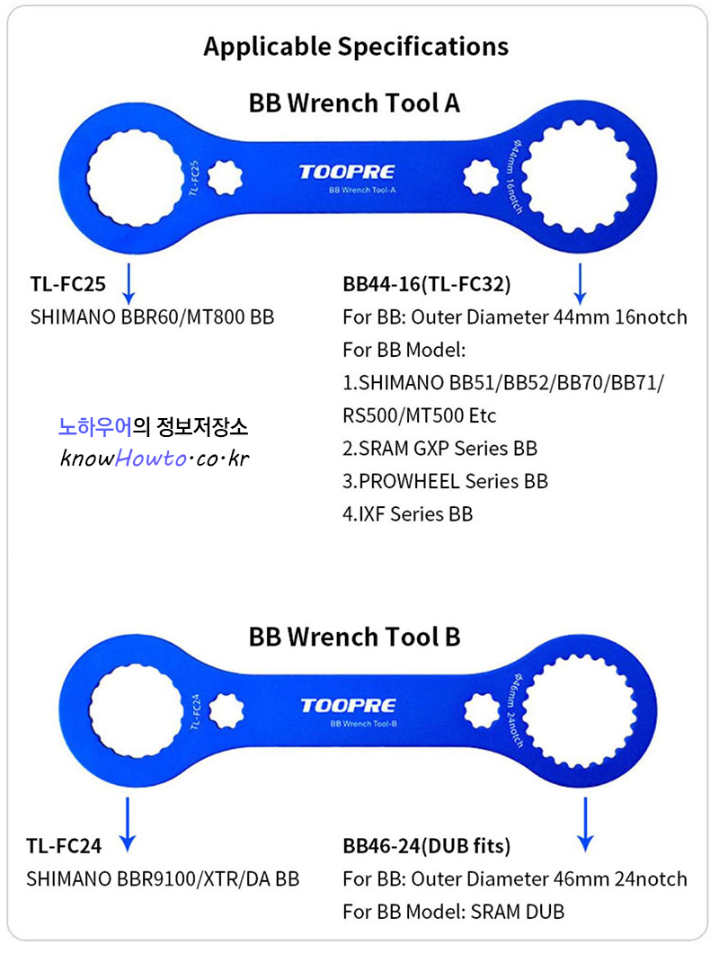 미니벨로든, 로드든, MTB든 비비교체 도구는 동일합니다.